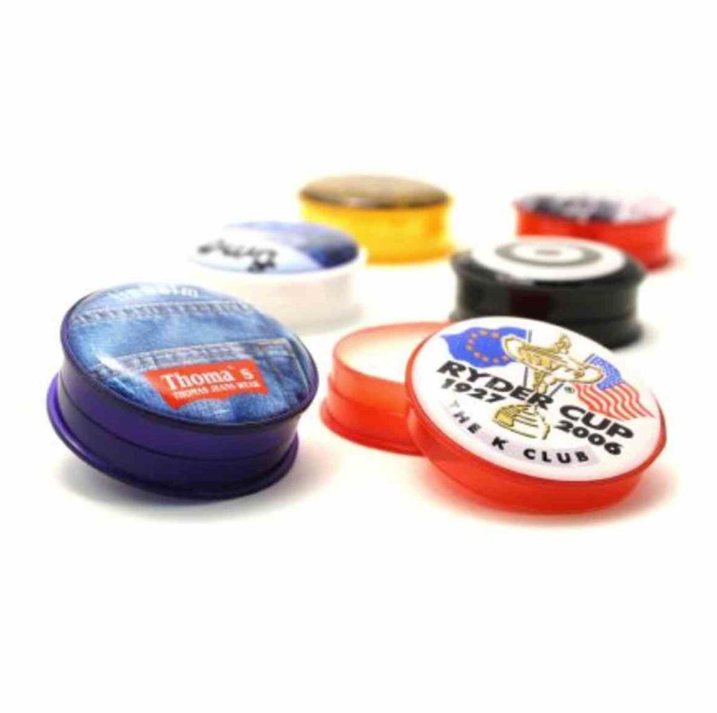 Lip balm in colourful jar. Photografic full colour doming on top. Only 10mm high which makes the product suitable for dm campaigns. Available in red, blue, yellow, green, orange and pink. Own pantone as from 5.000 units. Without mineral oils. With a slight taste of vanilla.